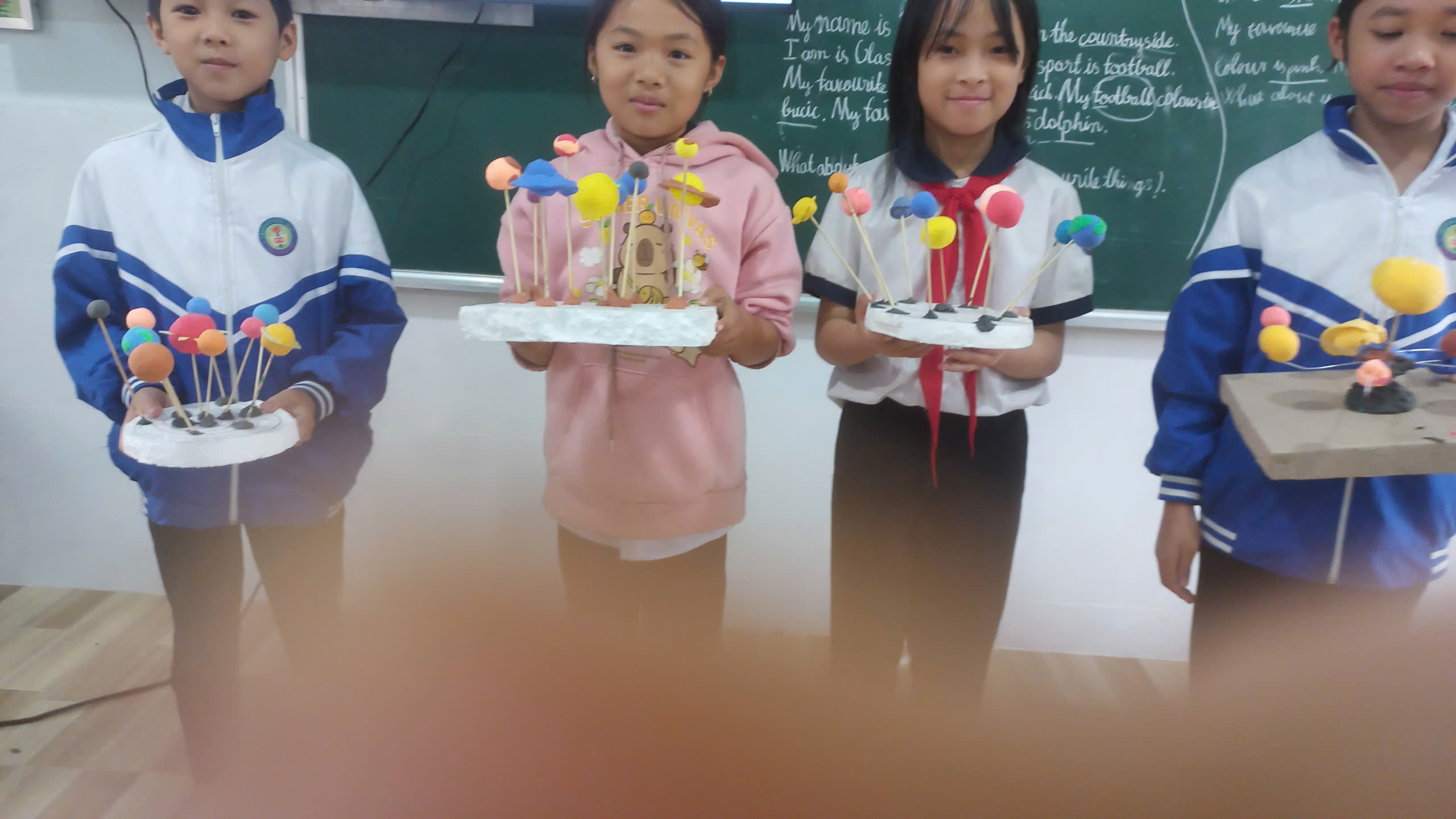 Điểm nhấn của tiết học chính là hoạt động nhóm. Mỗi em đều được tham gia từ khâu lên ý tưởng, lựa chọn vật liệu đến lắp ráp mô hình. Không khí lớp học sôi nổi, rộn ràng bởi những tiếng trao đổi, bàn bạc và cả những nụ cười khi mô hình hoàn thành. Các sản phẩm mang đậm dấu ấn sáng tạo cá nhân nhưng vẫn thể hiện tinh thần hợp tác bền chặt.