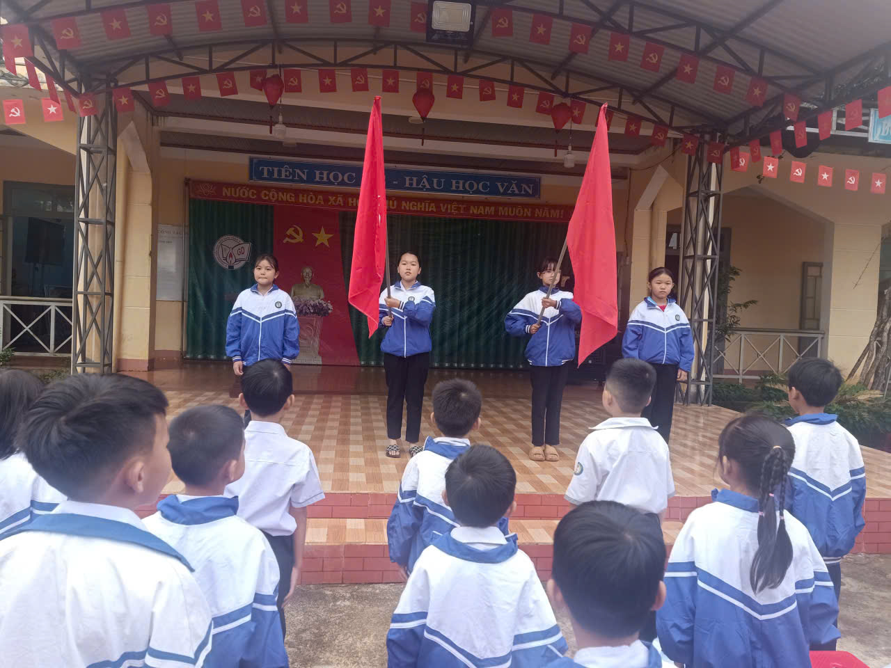Sau phần nghi thức chào cờ, lớp trực tuần lên đọc xếp loại thi đua trong tuần, cô giáo trực tuần lên nhận xét và tuyên truyền theo chủ đề tháng. cô Nông Thị Luyến – Tổng phụ trách Đội đã thay mặt Liên đội phát biểu, nhắc nhở học sinh ra sức thi đua học tập, rèn luyện thật tốt, đồng thời biểu dương các tập thể lớp có thành tích xuất sắc trong tuần qua. Giọng nói nhẹ nhàng, truyền cảm của cô đã tiếp thêm cho các em niềm hứng khởi bước vào tuần học mới.