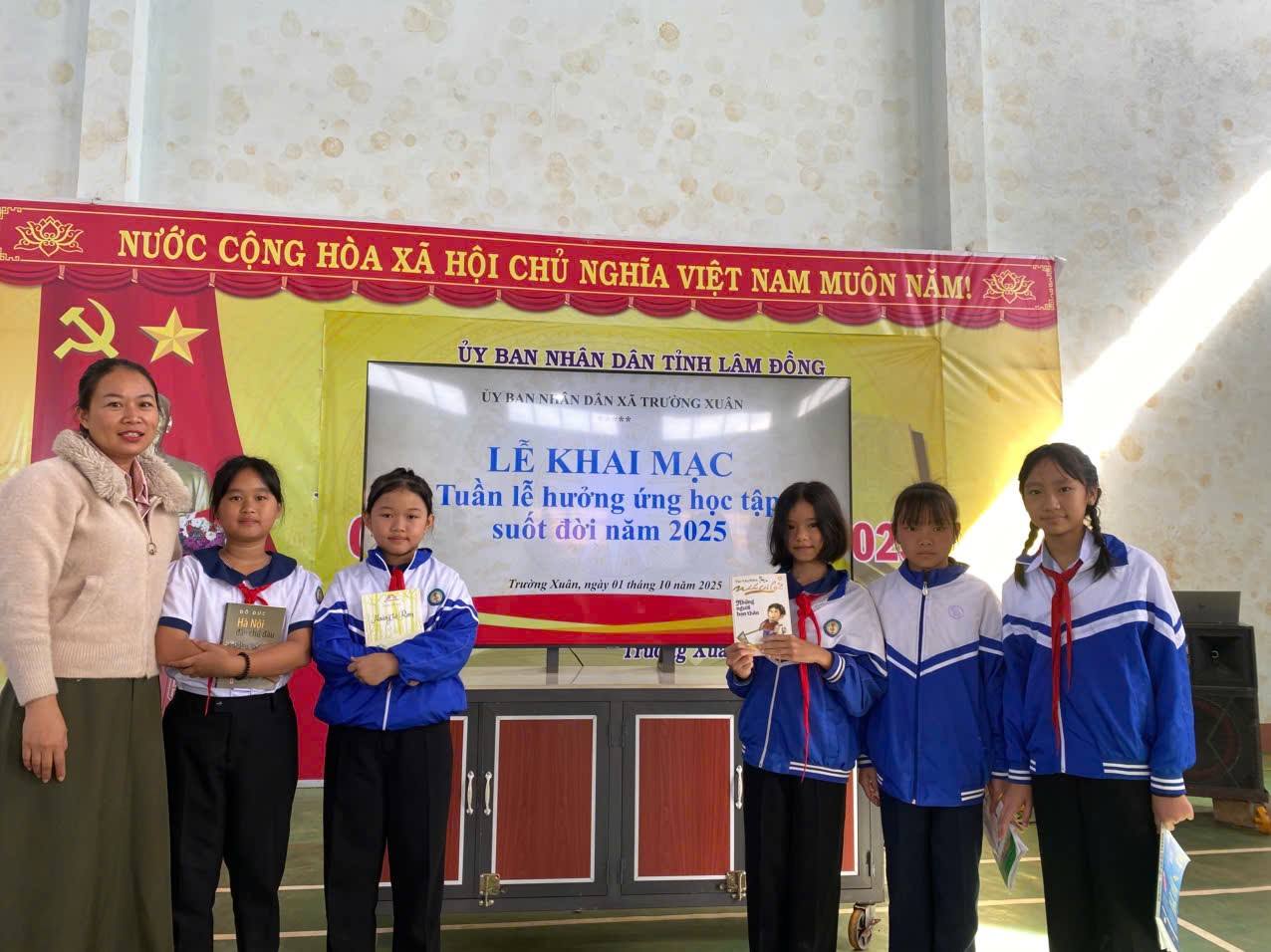 📚 Đại diện nhà trường, thầy Đỗ Cao Cường – Phó Hiệu trưởng Trường Tiểu học Trần Quốc Toản, cùng các cô giáo Chu Thị Kim Huệ, Nguyễn Thùy Nhung, Nông Thị Luyến, Nguyễn Thị Hồng Huệ và 20 em học sinh ở các khối 3-5 đã tích cực tham gia các hoạt động hưởng ứng. Sự hiện diện và tinh thần nhiệt huyết của thầy trò nhà trường đã góp phần lan tỏa mạnh mẽ phong trào học tập đến đông đảo người dân trên địa bàn xã.