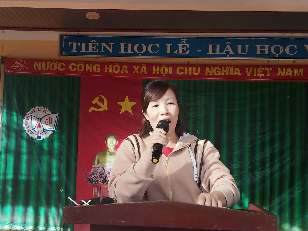 Kết thúc buổi lễ, cô Nông Thị Luyến – Giáo viên Tổng phụ trách Đội lên nhận xét và dặn dò học sinh toàn trường. Cô biểu dương những tập thể, cá nhân có thành tích tốt trong tuần, đồng thời nhấn mạnh việc duy trì nề nếp học tập, giữ gìn vệ sinh, thực hiện tốt phong trào “Xây dựng trường học thân thiện, học sinh tích cực”.
