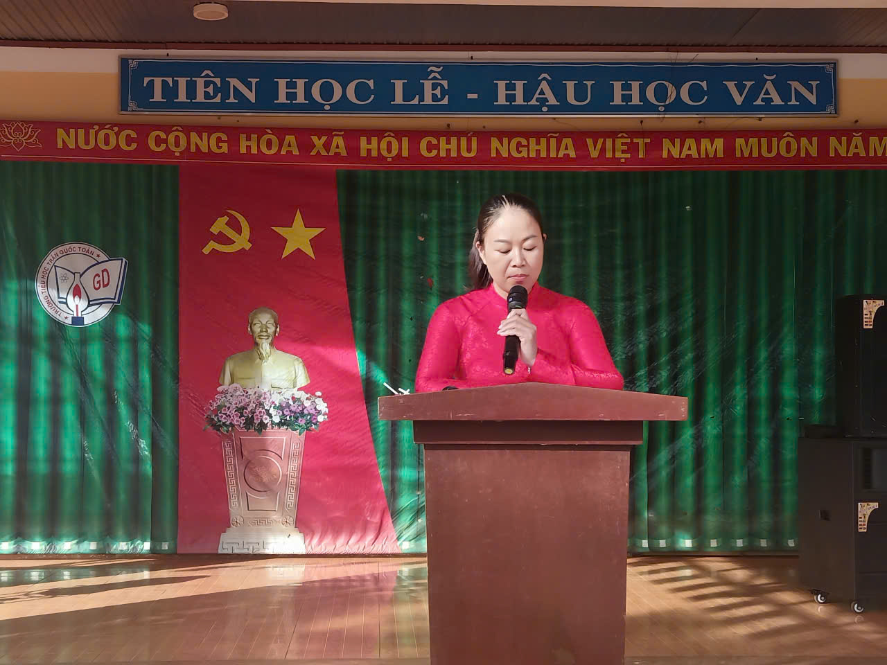 Sau phần báo cáo, cô giáo Nguyễn Thị Thùy Nhung – giáo viên trực tuần đã lên nhận xét, đánh giá chung về hoạt động trong tuần qua. Cô ghi nhận sự cố gắng của các lớp trong việc giữ gìn vệ sinh, chấp hành nội quy trường lớp và tinh thần học tập tích cực của học sinh toàn trường. Đồng thời, cô cũng nhắc nhở một số lớp cần nâng cao ý thức trong việc xếp hàng, giữ trật tự khi ra vào lớp học.