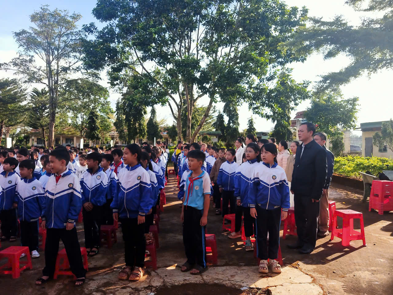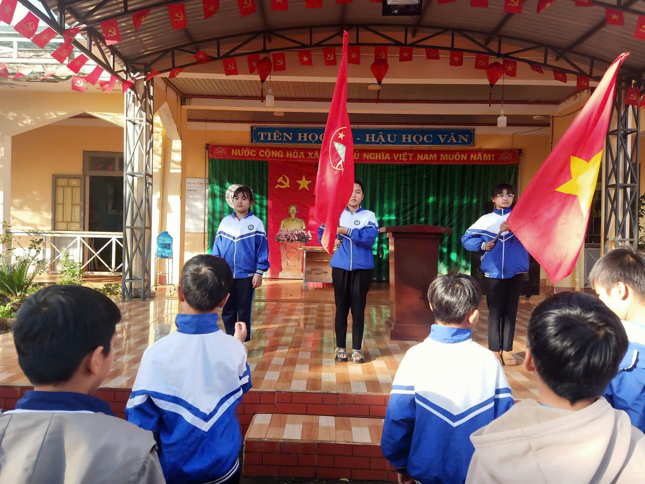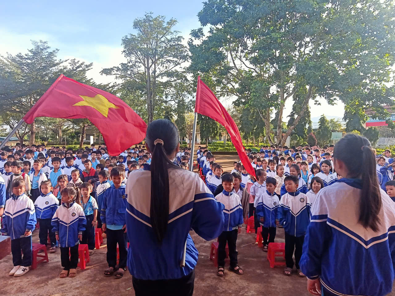 Lá quốc kỳ tung bay trong nền nhạc Quốc ca hào hùng, mở đầu cho một tuần học mới tràn đầy quyết tâm của thầy và trò nhà trường.