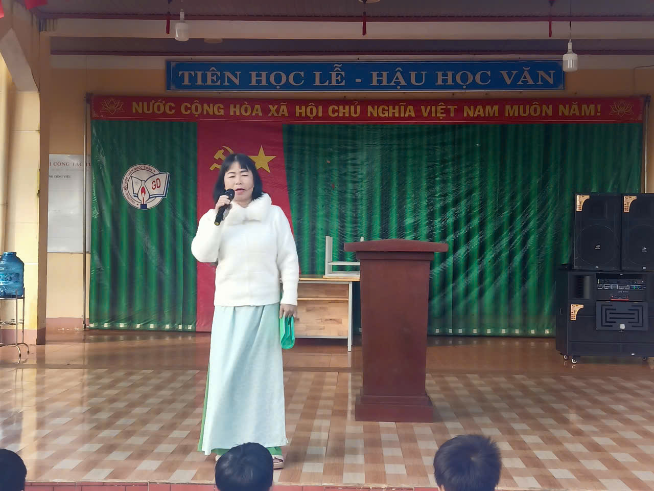 Tiếp nối chương trình, cô Hồ Thị Hằng, giáo viên trực tuần, tiến hành nhận xét nề nếp toàn trường. Cô biểu dương tinh thần cố gắng của các lớp, đồng thời nhắc nhở một số điểm cần cải thiện trong việc giữ gìn vệ sinh, xếp hàng ra vào lớp và thực hiện nếp sống thân thiện, kỷ luật.