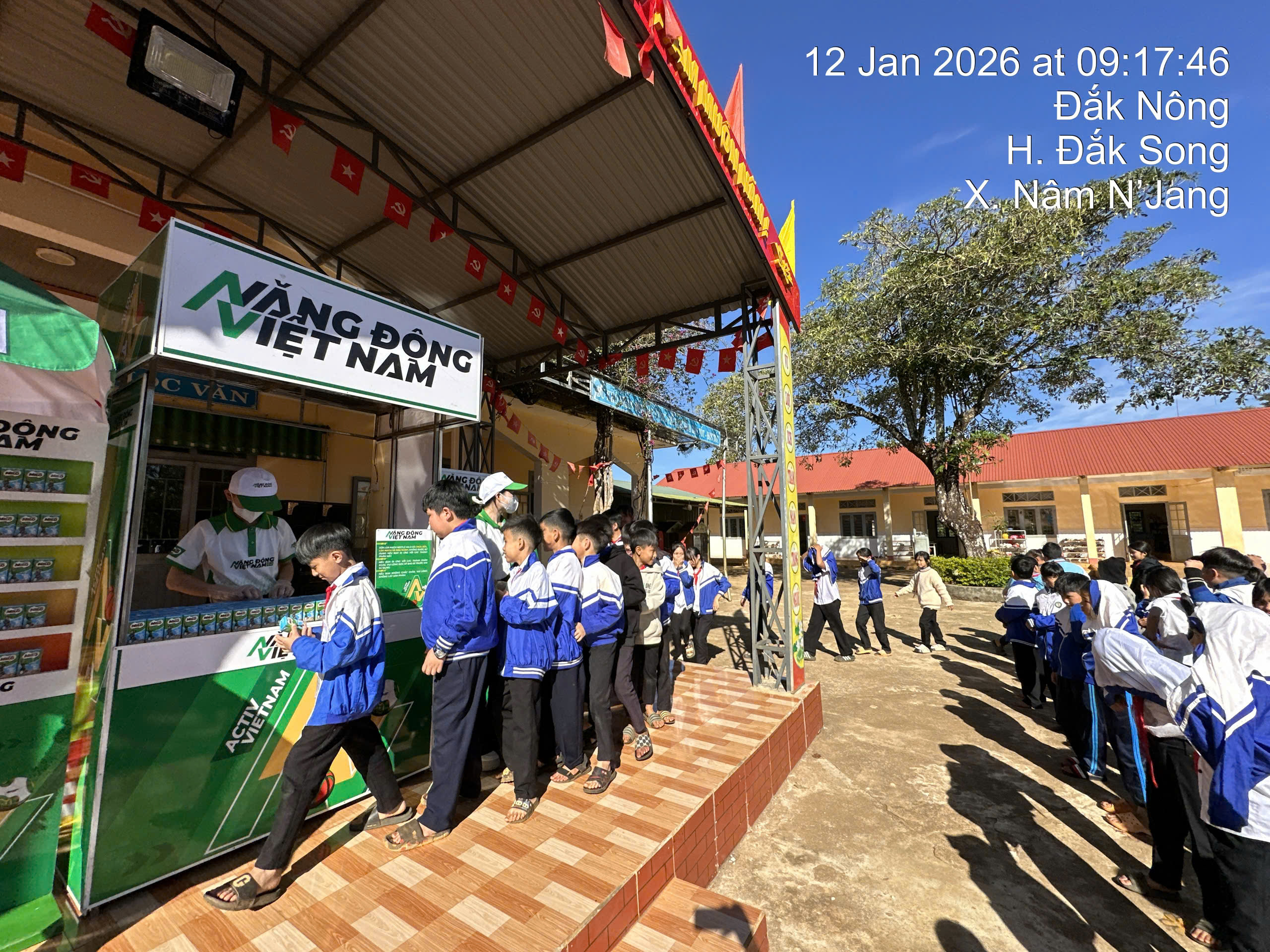 Sáng ngày 12/01/2026, trong không khí học tập sôi nổi của những ngày đầu năm mới, Liên đội Trường Tiểu học Trần Quốc Toản đã phối hợp cùng Công ty TNHH Quảng Cáo Bằng Phát tổ chức triển khai Chương trình giáo dục dinh dưỡng và trao tặng sản phẩm sữa Nestlé cho học sinh toàn trường. Hoạt động được thực hiện theo Công văn số 1333/SGDĐT-GDTH ngày 13/10/2025 của Sở Giáo dục và Đào tạo tỉnh Lâm Đồng và Công văn số 46/UBND-VHXH của UBND xã Trường Xuân, thể hiện sự quan tâm thiết thực của các cấp, các ngành đối với sức khỏe và sự phát triển toàn diện của học sinh tiểu học.