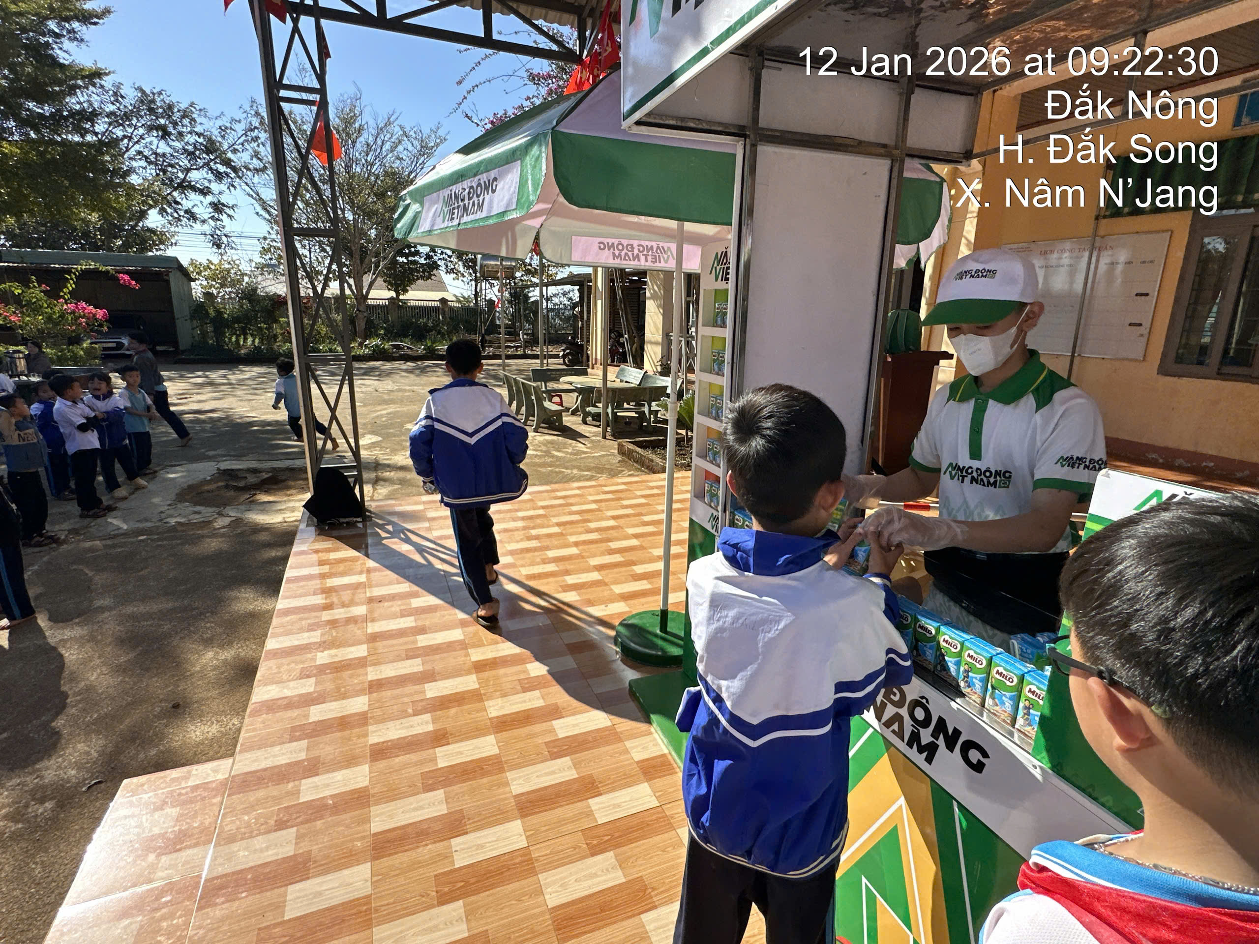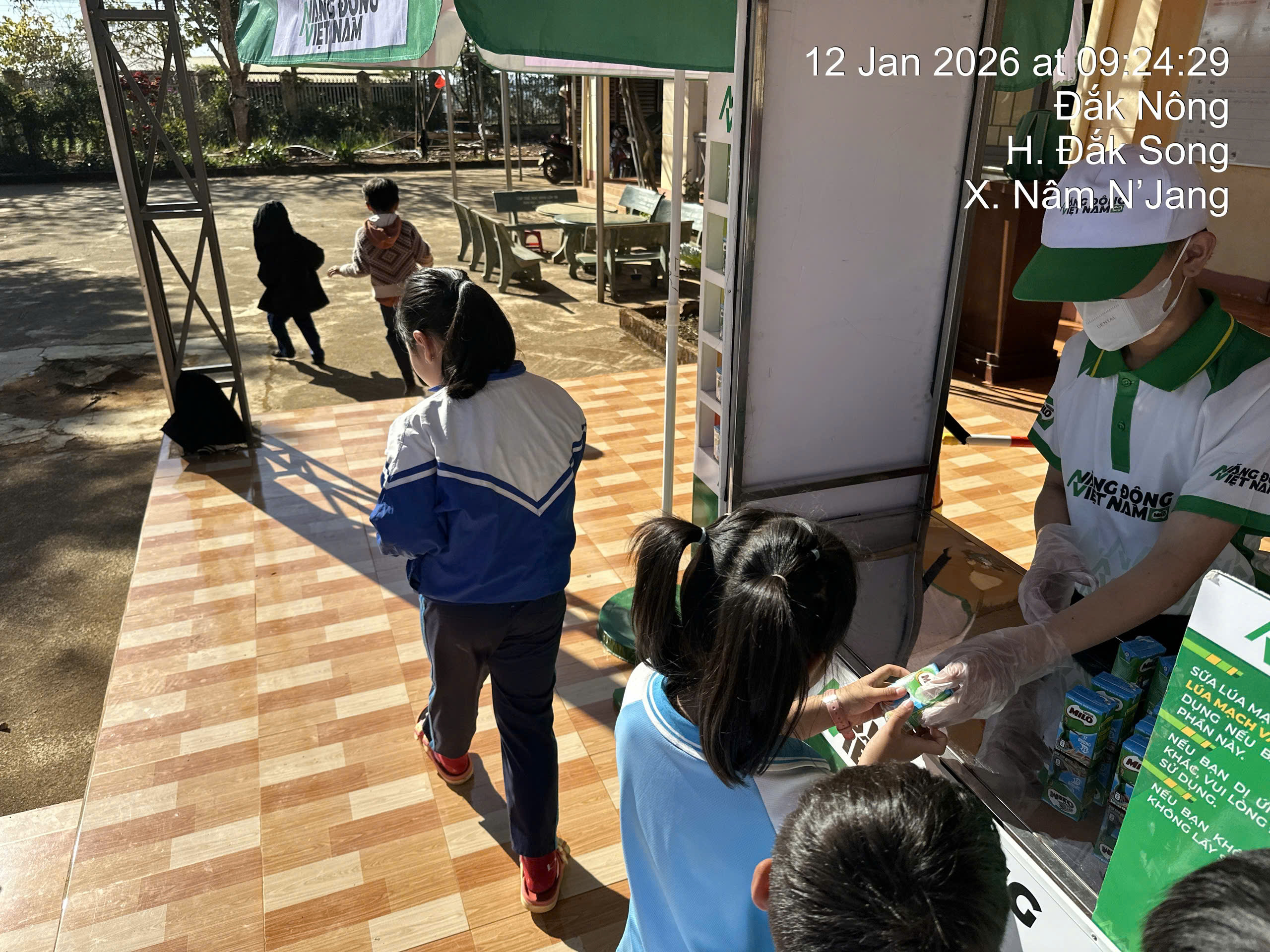 Cũng trong dịp này, mỗi học sinh được trao tặng 01 hộp sữa lúa mạch Nestlé Milo 110ml. Món quà tuy nhỏ nhưng mang ý nghĩa lớn, vừa bổ sung dinh dưỡng, vừa là nguồn động viên tinh thần để các em thêm vui tươi, hứng khởi trong học tập. Nhà trường đã tạo điều kiện thuận lợi để đơn vị phối hợp triển khai chương trình đúng kế hoạch, an toàn và hiệu quả. Chương trình không chỉ lan tỏa thông điệp về dinh dưỡng học đường mà còn thể hiện sự chung tay của nhà trường, địa phương và doanh nghiệp trong việc chăm lo cho thế hệ măng non của quê hương.