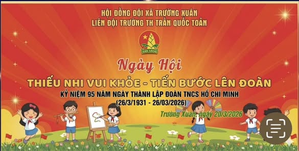 Thực hiện KH số 03-KH/ĐTN của BCH Đoàn xã Trường Xuân. Ngày 20/03 Liên đội trường Trần Quốc Toản tổ chức ngày hội “Thiếu nhi vui khỏe” Chào mừng kỷ niệm 95 năm Ngày thành lập Đoàn TNCS Hồ Chí Minh (26/3/1931 – 26/3/2026) và phát động đợt thi đua chào mừng 85 năm Ngày thành lập Đội TNTP Hồ Chí Minh (15/5/1941 – 15/5/2026)
