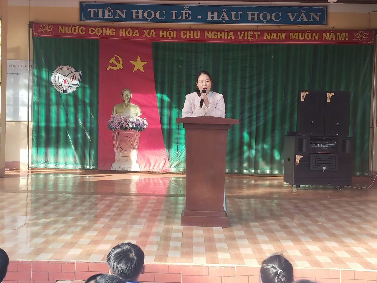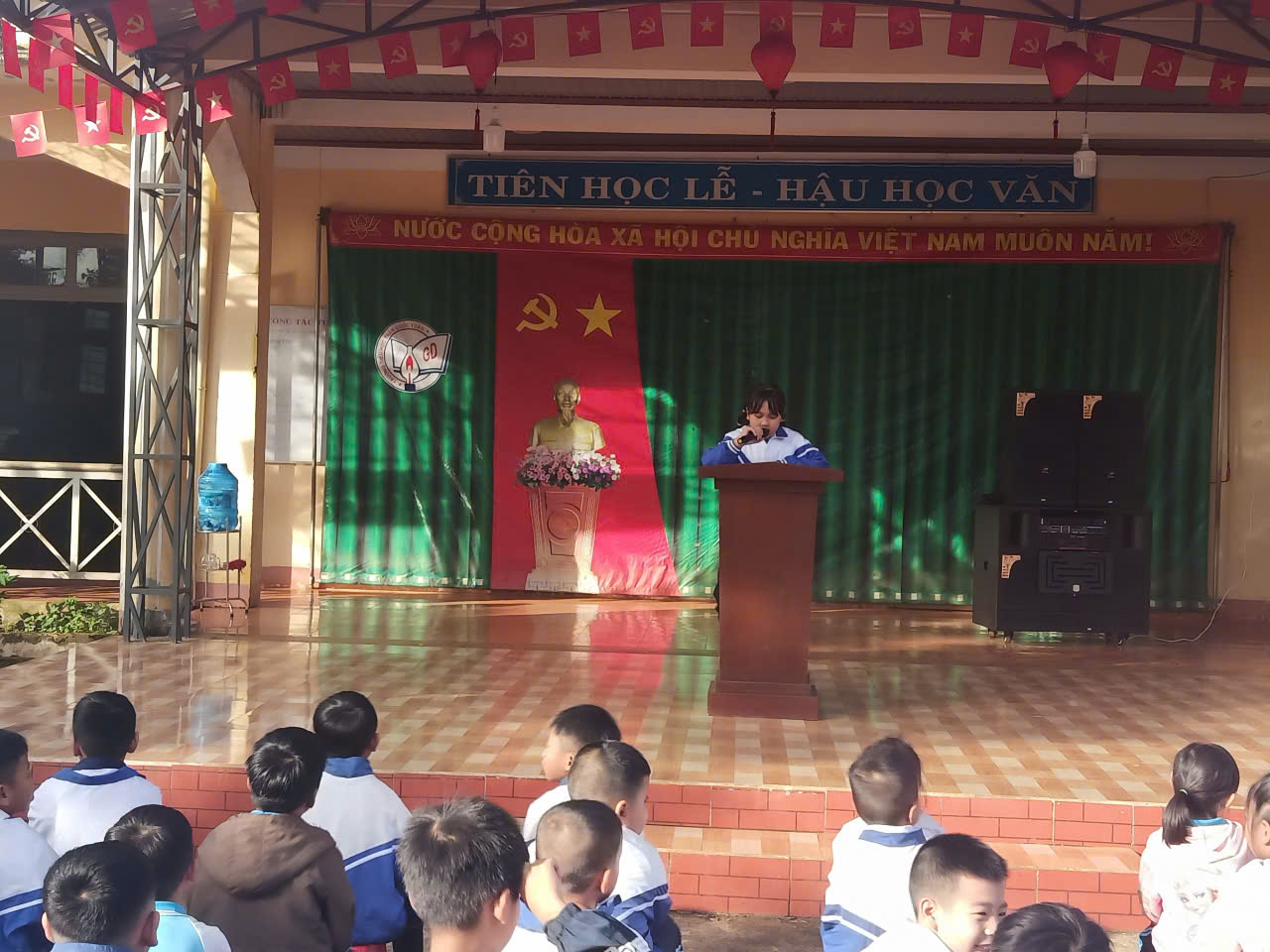 Trong phần phát biểu chỉ đạo, thầy Hiệu trưởng biểu dương những tập thể và cá nhân tiêu biểu, đồng thời nhắc nhở học sinh toàn trường tiếp tục phát huy tinh thần đoàn kết, trách nhiệm và tích cực rèn luyện đạo đức, kỹ năng sống. Cô Tổng phụ trách Đội cũng lên dặn dò thêm về nề nếp, an toàn khi tham gia giao thông và ý thức bảo vệ tài sản chung.